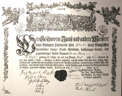Befähigung zum Meister mußte der Geselle durch ein Meisterstück, den